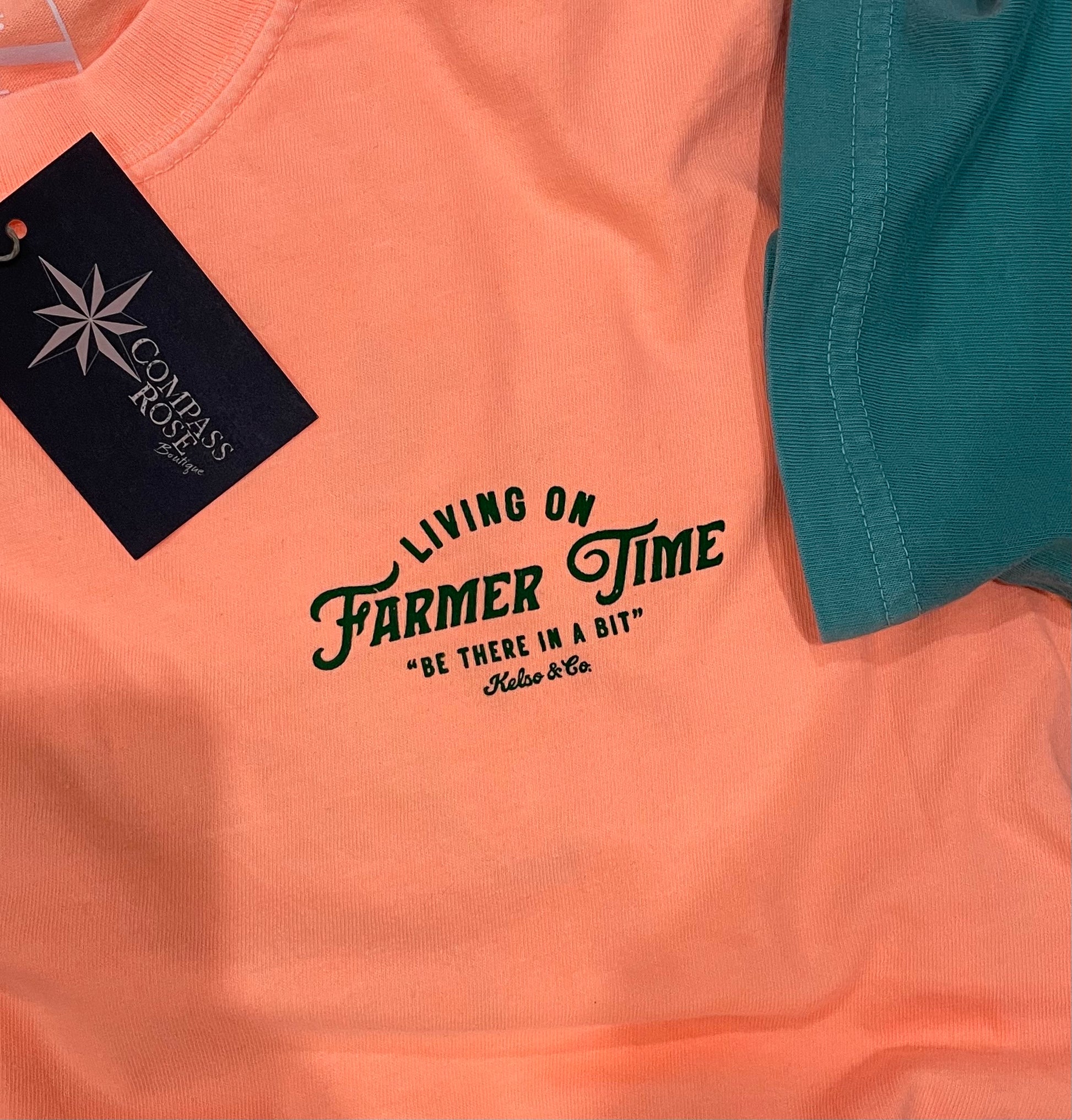 Colors: Neon Cantaloupe with Green screen printed graphic